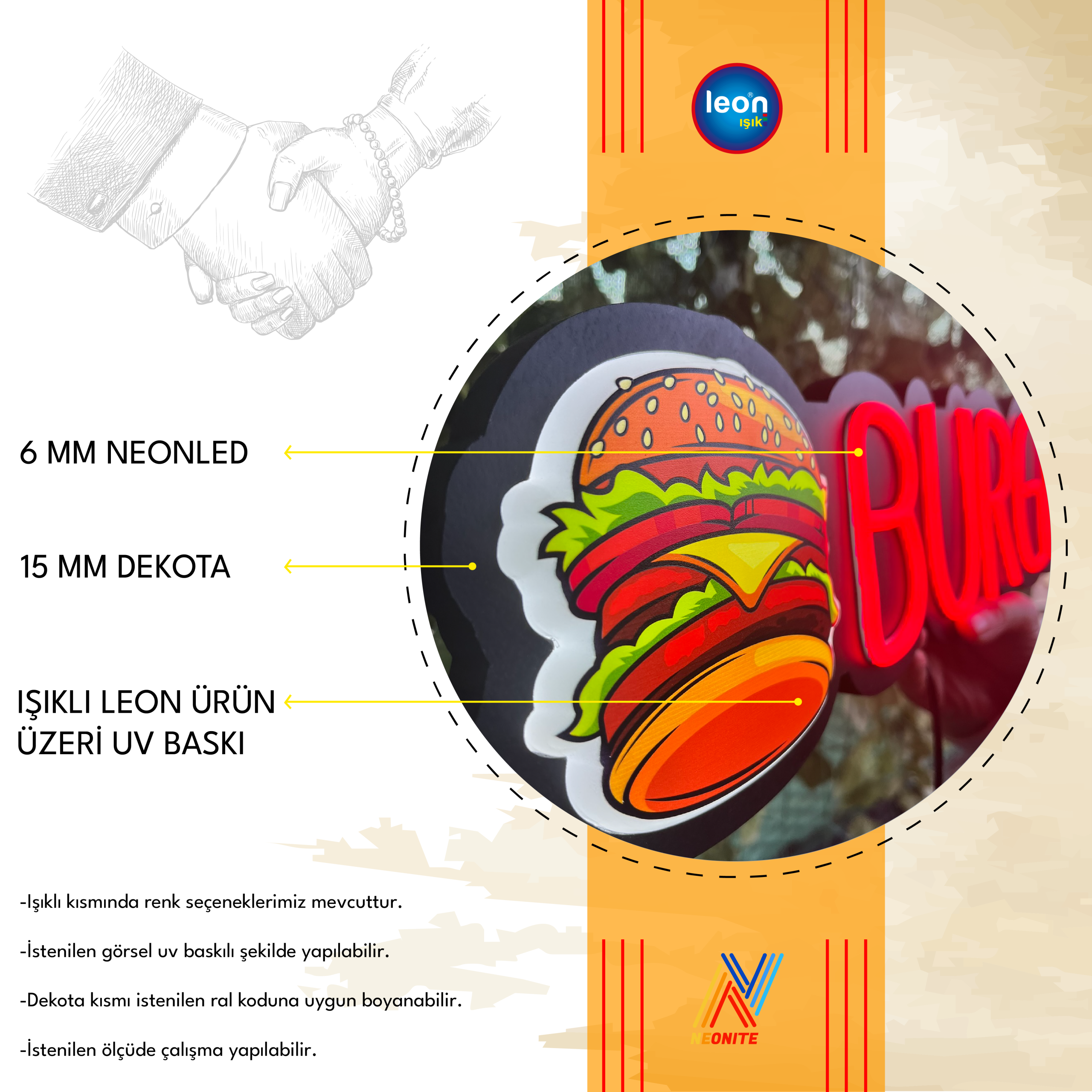 - BURGER YAZISI 6 MM NEONLED’DİR.