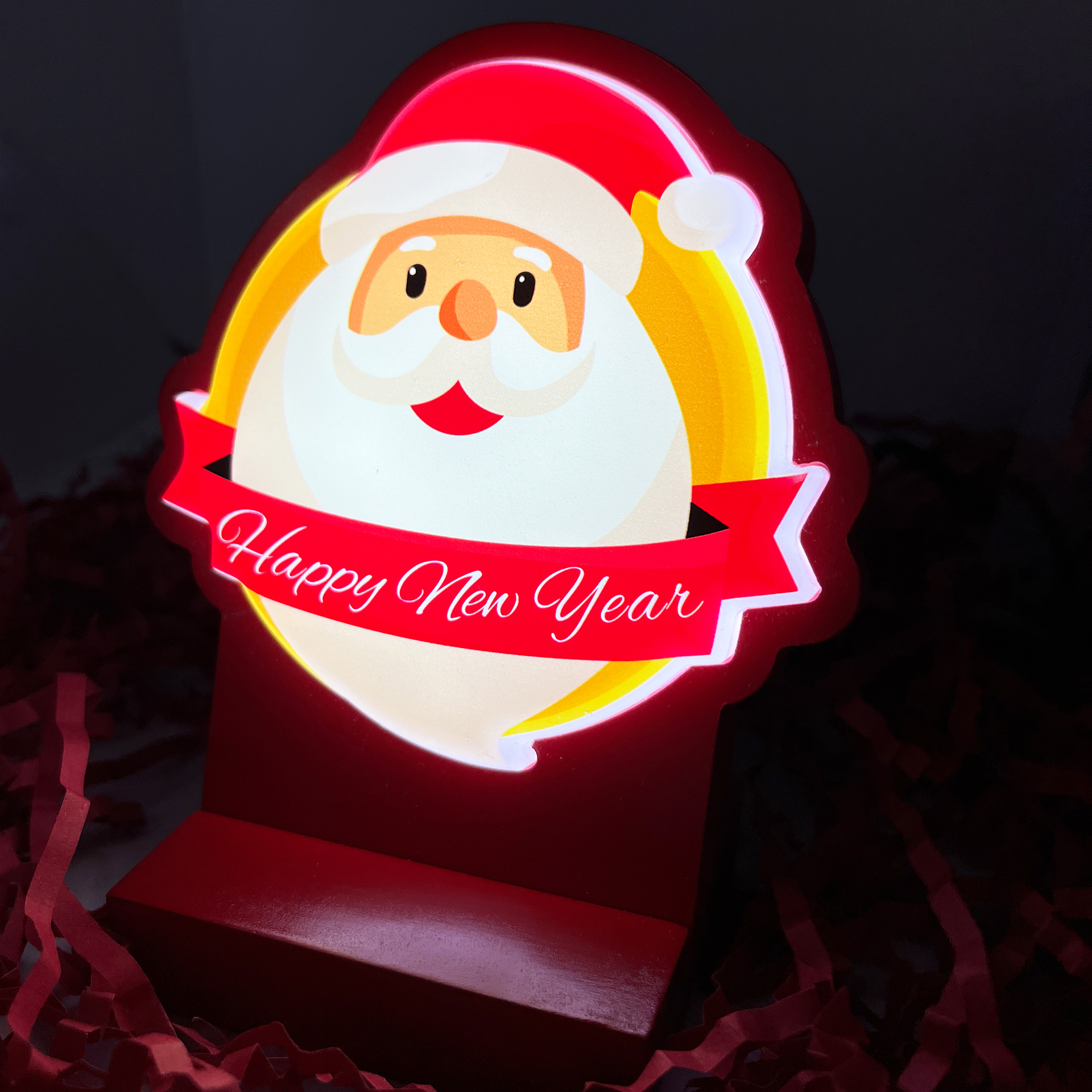 Happy New Year Noel Yılbaşı Masaüstü Led Lamba/gece Lambası/usb’li Ve Uv Baskılı (leon—led Ile Neon Görünüm) 11*11 CM
